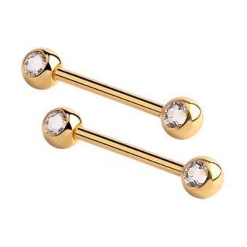 CZ Gold Nipple Barbells 14g – 15/32″ long (12mm) – 5mm balls Clear Gold Stainless
