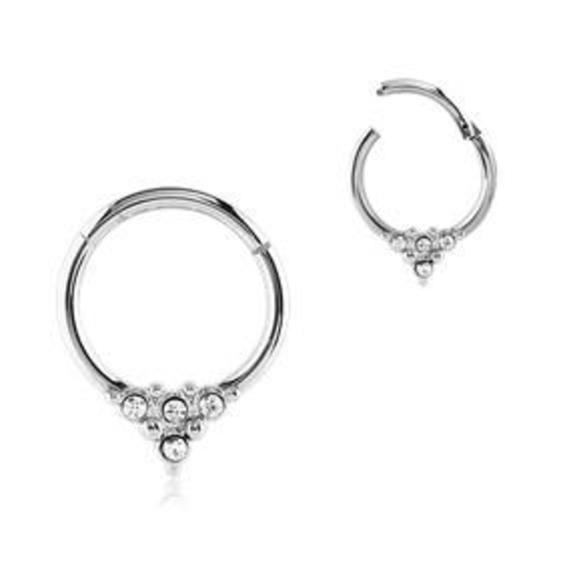 CZ Point Stainless Hinged Segment Ring 16g – 5/16″ diameter (8mm) Clear Stainless Steel