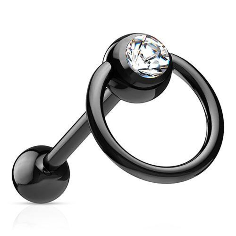 CZ PVD Coated Tongue Knocker 14g – 5/8″ long (16mm) Clear Black Stainless