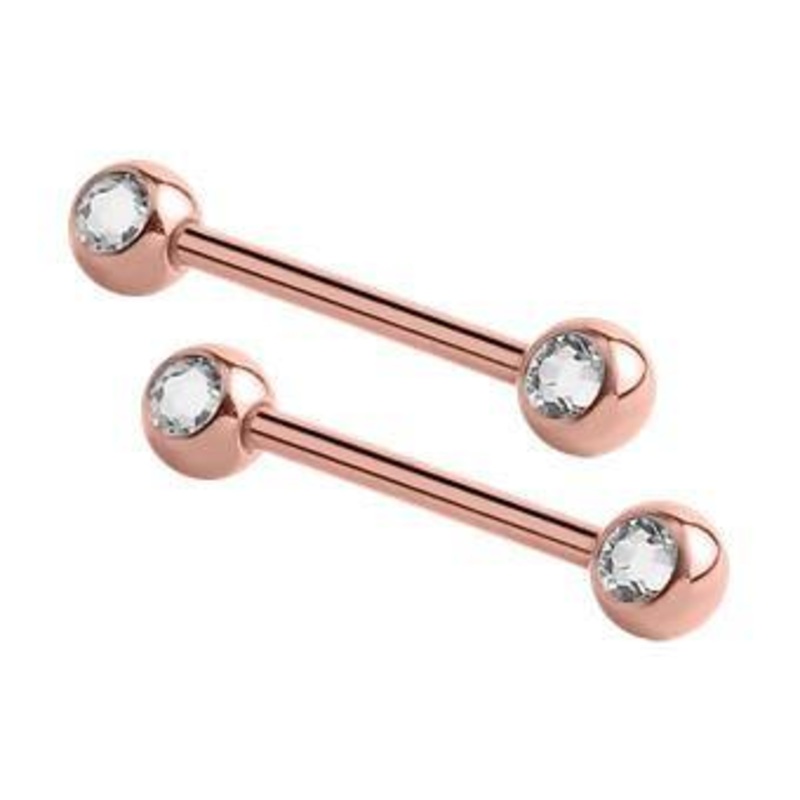 CZ Rose Gold Nipple Barbells 14g – 15/32″ long (12mm) – 5mm balls Clear Rose Gold Stainless