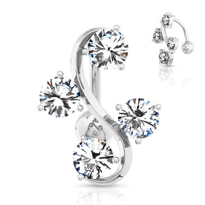 The 14 gauge cz vine reversebellyringismade from 316L stainless steel with external threading. Only the bottom 5mm ball is removable.Choose your gem color below.