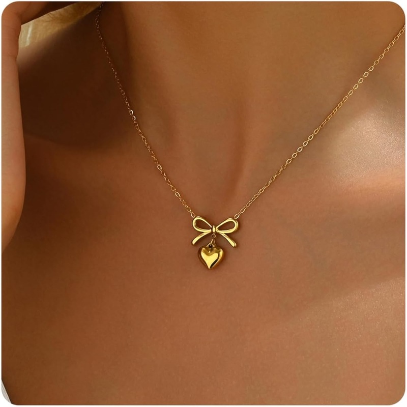 This beautiful Dainty Bow Pearl Fashion Gold Necklace features a dainty bow with a pearl pendant. The chain is made of stainless steel with a herringbone pattern, adding a touch of elegance to the overall design. The necklace is perfect for everyday wear and can be dressed up or down. The 18K gold plating gives it a luxurious look without the high price tag. The bow pendant is delicate and feminine, making it a great accessory for women of all ages. The necklace is also versatile and can be paired with a variety of outfits, from casual to formal. The pearl pendant adds a touch of sophistication and elegance to the necklace. The chain is adjustable, making it easy to find the perfect fit. The necklace is made with high-quality materials and is built to last. It’s a great addition to any jewelry collection and makes a wonderful gift for friends and loved ones. The necklace is also easy to clean and maintain, making it a practical choice for everyday wear. Overall, this 18K gold plated dainty bow pearl necklace is a beautiful and elegant accessory that is sure to make a statement.