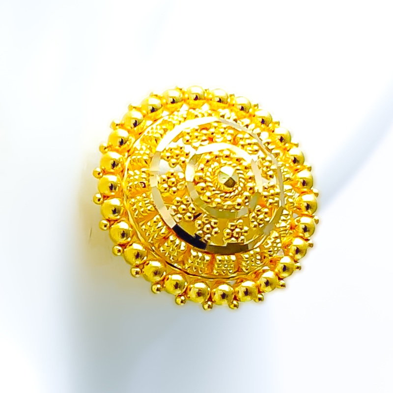 Graceful and charming, these 22k gold earrings showcase a delicate design that radiates timeless elegance. Weighing 5.1 grams, their lustrous yellow gold finish enhances their refined appeal, making them a versatile addition to any jewelry collection. With a 0.6-inch diameter, these beautifully crafted tops offer a subtle yet sophisticated look, perfect for everyday wear or special occasions. Secured with a reliable screw-back post, they ensure both comfort and durability. Designed for those who appreciate understated beauty, these dainty earrings add a touch of loveliness to any ensemble.