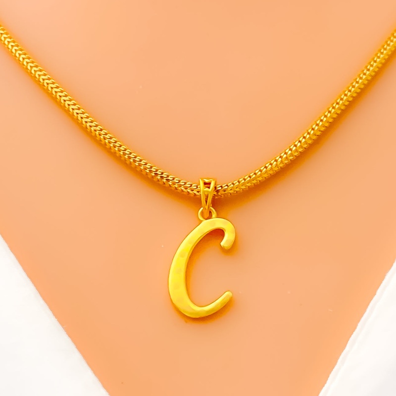 Dainty Petite C 22k Gold Letter Pendant