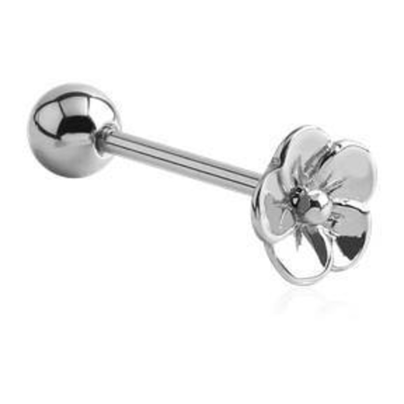 The daisy tongue barbell is made from 316L stainless steel with external threading. The 14 gauge barbell is 5/8" long.