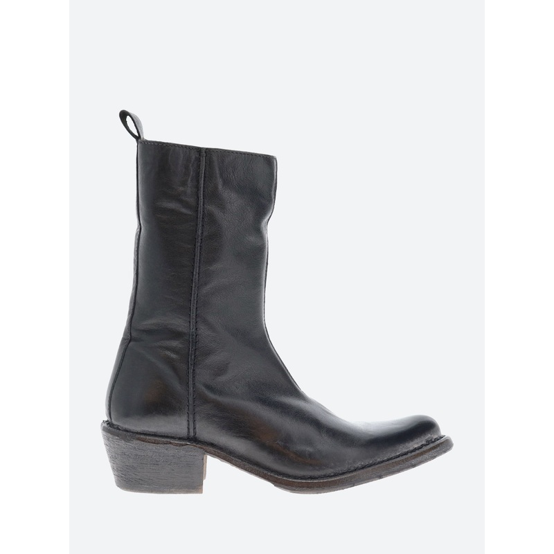 A timeless western-inspired leather boot with exposed inner zip closure, set on a stacked heel.Ankle heightExposed inner side zipper closure with leather pullTonal stitchingPointed toePull tab at backStacked leather heelMeasurements:50mm heelFree Gift with