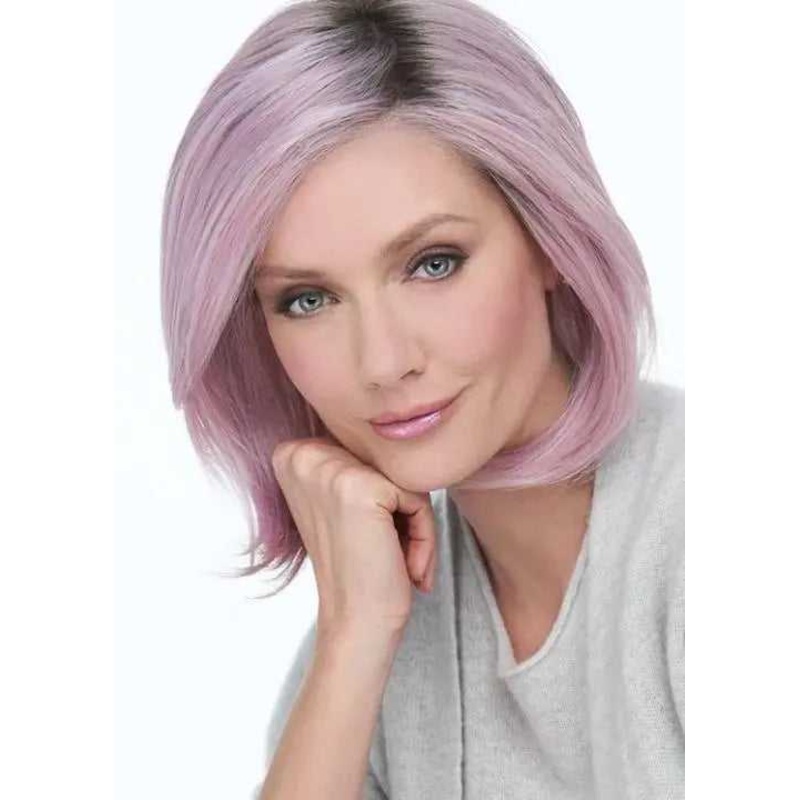 A feminine, softly layered bob, DARE TO BE includes tapered lengths throughout that gently fall to just below the chin, and lightly textured, side sweeping fringe that perfectly accents the eyes. The sheer lace front and monofilament top allows for off-the-face styling and varied parting options, while the dusty pink coloration reflects the latest trend in fantasy hair colors.