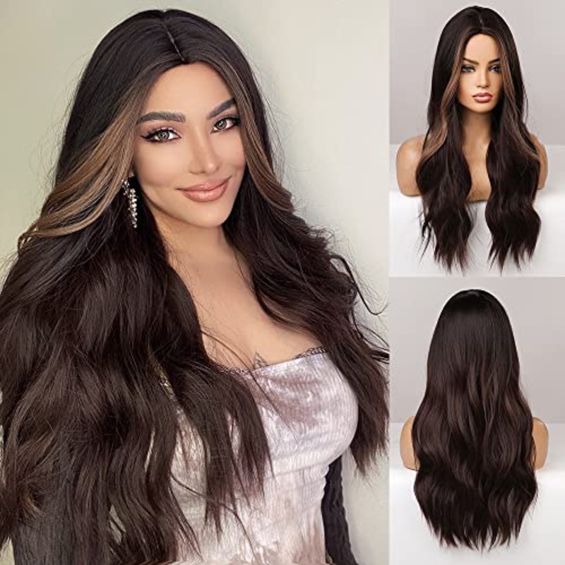 Dark Brown Synthetic Heat Resistant Fibre Wig with Front Bold HighlightSynthetic kanekalon heat friendly fibreAverage cap 22"Open machine capAdjustable strapsLength: 26 inches