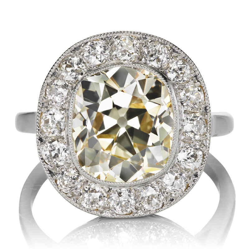 Incredible Warm 5 Carat Old Mine Cut Diamond Antique Engagement Ring with Diamond Halo