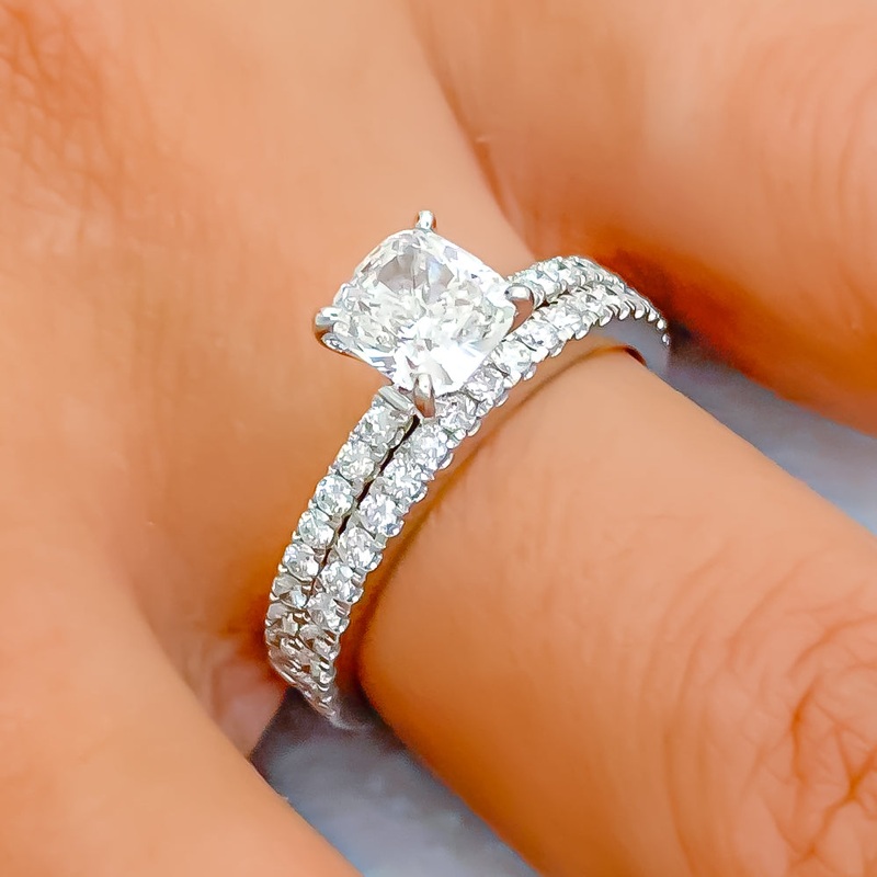 Decadent Princess Cut Diamond + 14k Gold Dual Band Ring