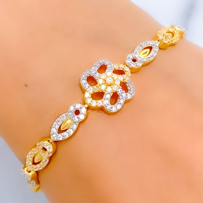 Delicate Open Flower CZ 22k Gold Bracelet