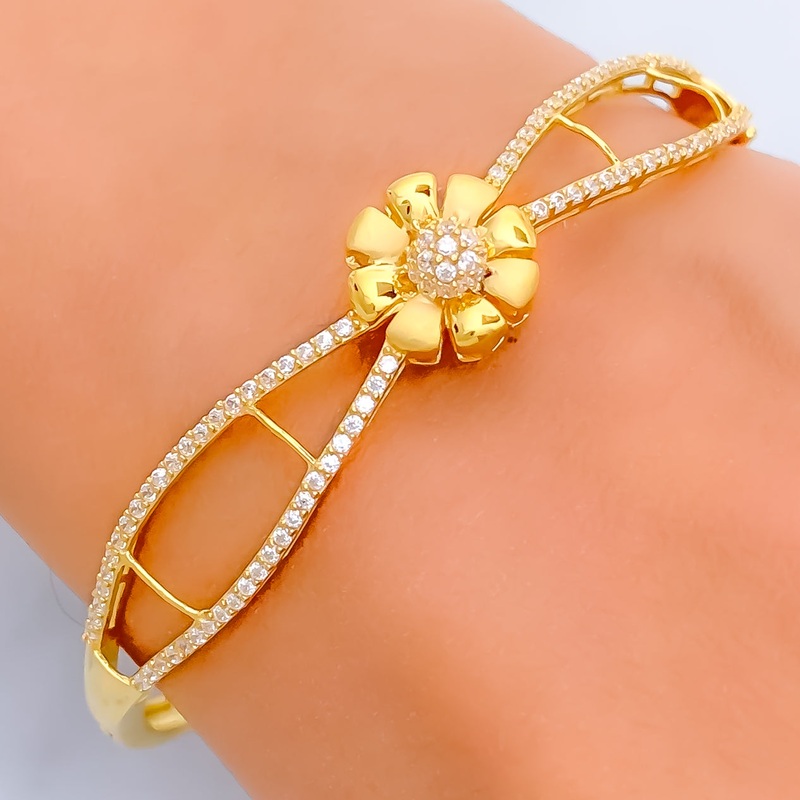 Delightful Flower 22k Gold CZ Bangle Bracelet