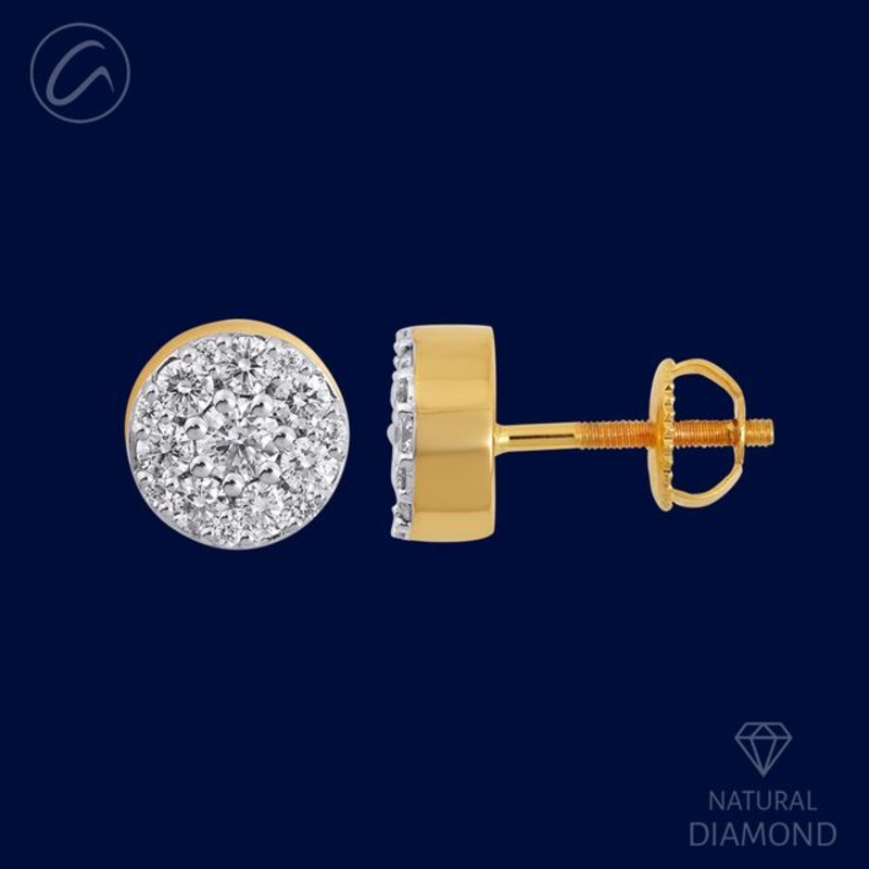 Refined in 18k yellow gold, these earrings radiate a delightful minimalist allure. Weighing 4.7 grams, they feature 0.94 carats of round brilliant-cut diamonds, graded G-H in color and VS in clarity for captivating sparkle with clean sophistication. The 0.3-inch diameter and top-style silhouette offer a sleek, understated elegance. Secured with screw-back posts for added comfort and confidence, these earrings blend subtle luxury with timeless styleideal for those who appreciate graceful, high-polish jewelry with effortless charm.