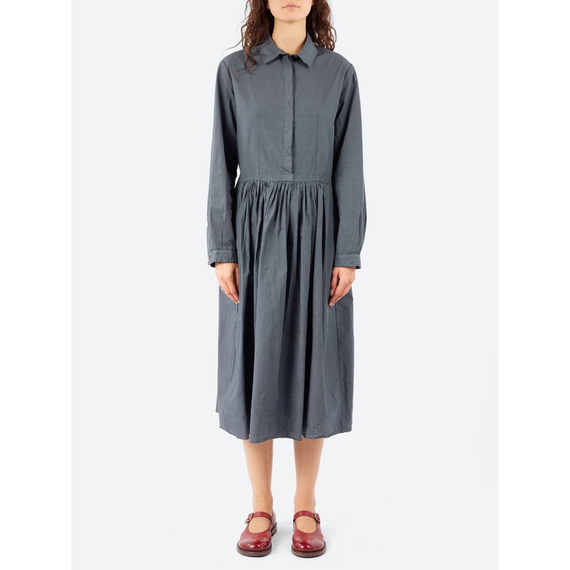 This Hannoh Wessel dress is a modern wardrobe staple with subtle, thoughtful details. Crafted from pure cotton, the design features a spread collar and a clean, concealed button placket for a refined, shirt-dress silhouette. A gathered waist adds gentle shape through the front, while an elasticated waistband at the back ensures a comfortable, flattering fit. Side pockets offer everyday functionality, and a softly gathered back yoke detail enhances the relaxed yet tailored feel.