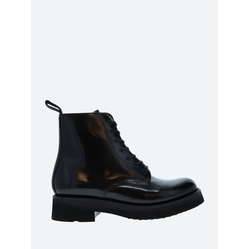 Denver is a simple derby boot made from polished black hi shine leather.Ankle heightLace-up closurePull loop at the collarShort rounded toeLightweight rubber dress soleMaterialsUpper: leatherLining: leatherOutsole: rubberSize GuideWomen's style listed in U