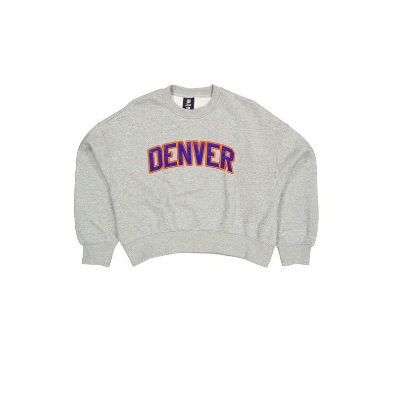 The Denver Broncos Sport Classics Women’s Crewneck features an embroidered Broncos satin appliqu wordmark at the front with an embroidered historic logo at the left sleeve and a boxy fit.