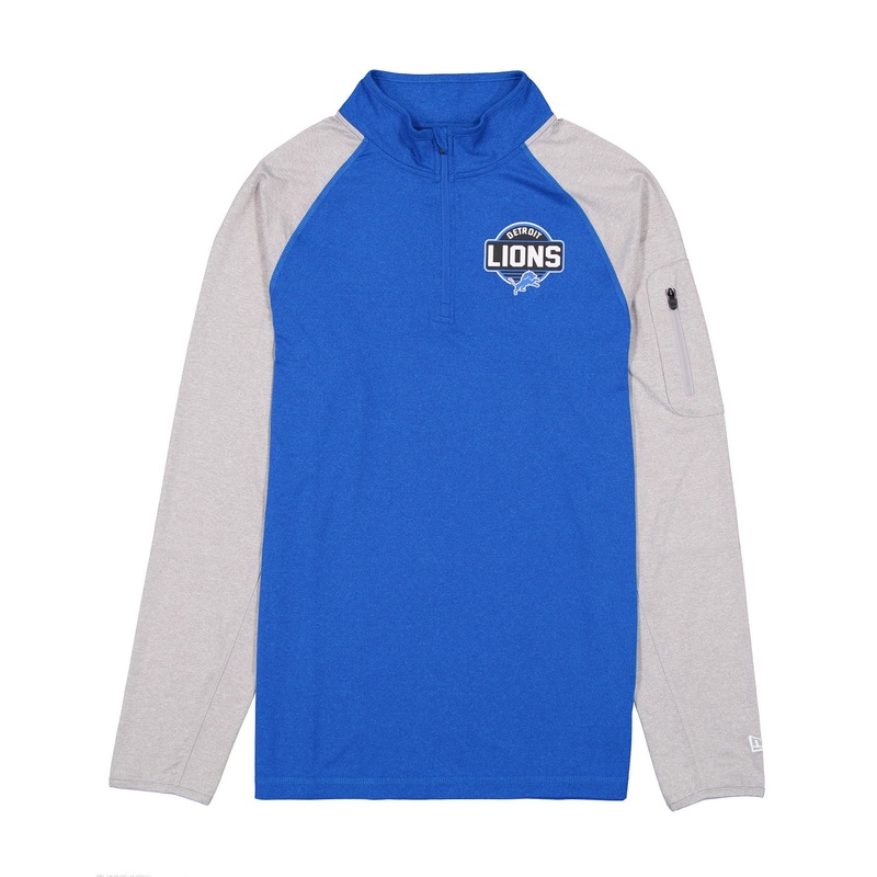 The Detroit Lions Active Quarter Zip features a screen-printed Lions logo at the left chest with a pocket at the left wear sleeve and a quarter zip closure at the collar.