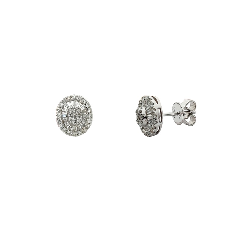 Precious Metal: 14 Karat White GoldEarring Back Type:PushBackGemstone:DiamondsRound & Baguettes ShapeCarats:0.70 ctsHeight:9.4 mm*Diameter: 8.5mm*Approx. Weight:2.5 grams**All weights are approximate.Please contact us if you have further questions about al