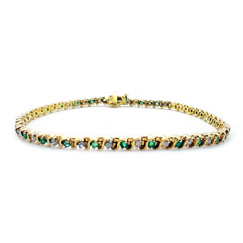 Precious Metal:14 Karat Yellow GoldType of Clasp:Custom BoxLockGemstone:Diamonds: 0.84 CaratsEmerald: 1.16 CaratsWidth:3.35 mm*Length:7 Inches*Weight:6.8 grams**All weights and measurements are approximate.Please contact us if you have further questions ab