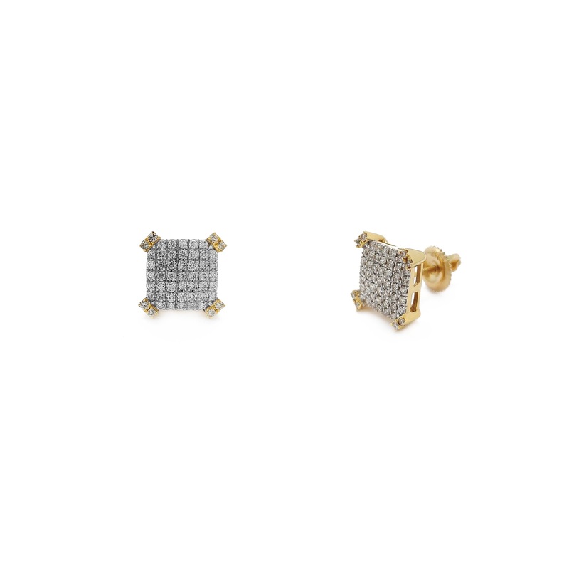 Diamond Iced-Out Square 4-Prong Stud Earrings (14K)