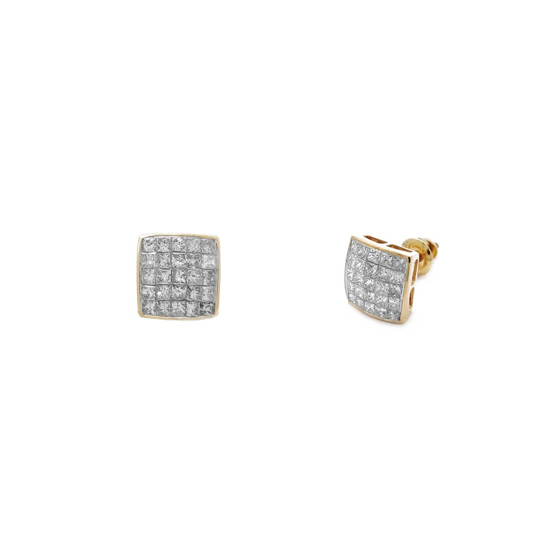 Diamond Pave Square Concave Stud Earrings (14K)