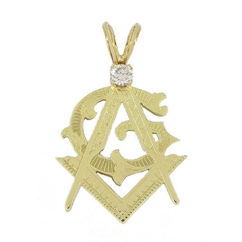 Diamond Set Masonic Pendant in 14 Karat Gold