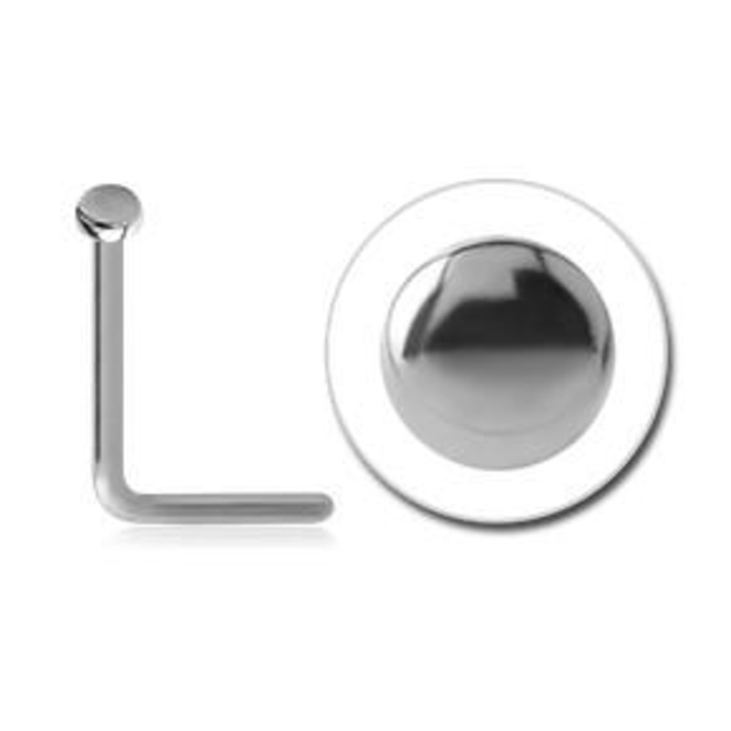 The 20 gauge L-bend nose stud ismade from 316L stainless steel. The diskstud has a 1.5mm diameter.