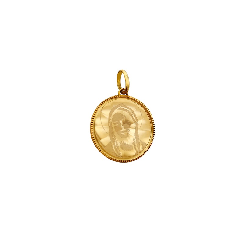 Dodecahedral Crystal Virgin Mary Medallion Pendant (18K)