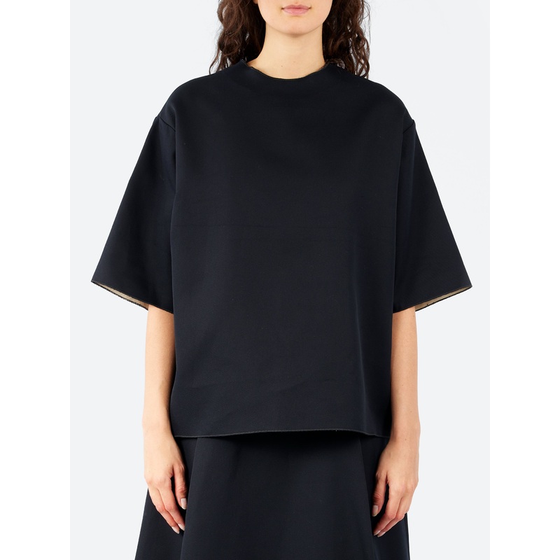 This oversized t-shirt combines comfort and luxury, featuring dropped shoulders and a discreet invisible zipper closure on the back.Round necklineDropped shouldersInvisible zipper closure on the backElbow-length sleevesOversized fitMade in ItalyMaterialsFa