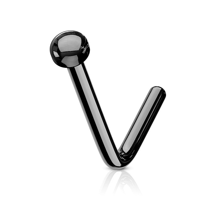 The 20 gauge dome L-bend nose stud is made from black PVD coated 316L stainless steel. Choose your size below.