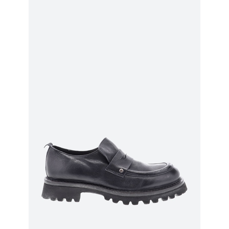Moma penny loafer in vintage effect leather with a chunky lugged sole.