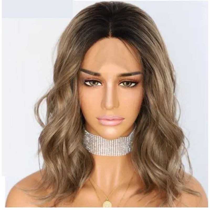 Mid Length Bob Ombre Blonde Wig with Dark Root