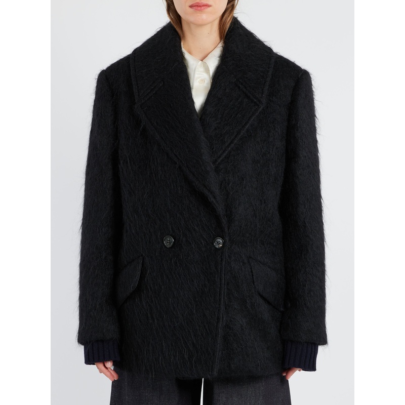 Acne Studios double-breasted coat is crafted from a wool blend with two front flap pockets.Notched lapelDouble-breasted silhouetteStructured at shouldersFront flap pocketsShaggy knit fabricBack ventMaterialsShell: 54% wool, 17% alpaca, 17% mohair, 12% nylo