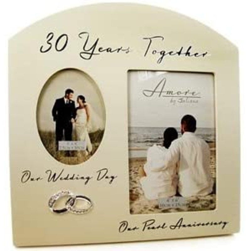 This 30 Year Anniversary Double Photo Frame is a perfect way to celebrate 30 years together.Decorated with Beautiful Wedding Rings with Crystals.A Beautiful Frame. Ideal Anniversary Gift.