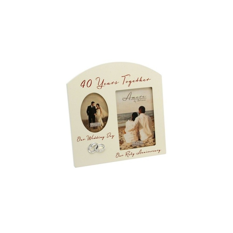 This 40 Year Anniversary Double Photo Frame is a perfect way to celebrate40 years together.Decorated with Beautiful Wedding Rings with Crystals.A Beautiful Frame. Ideal Anniversary Gift.