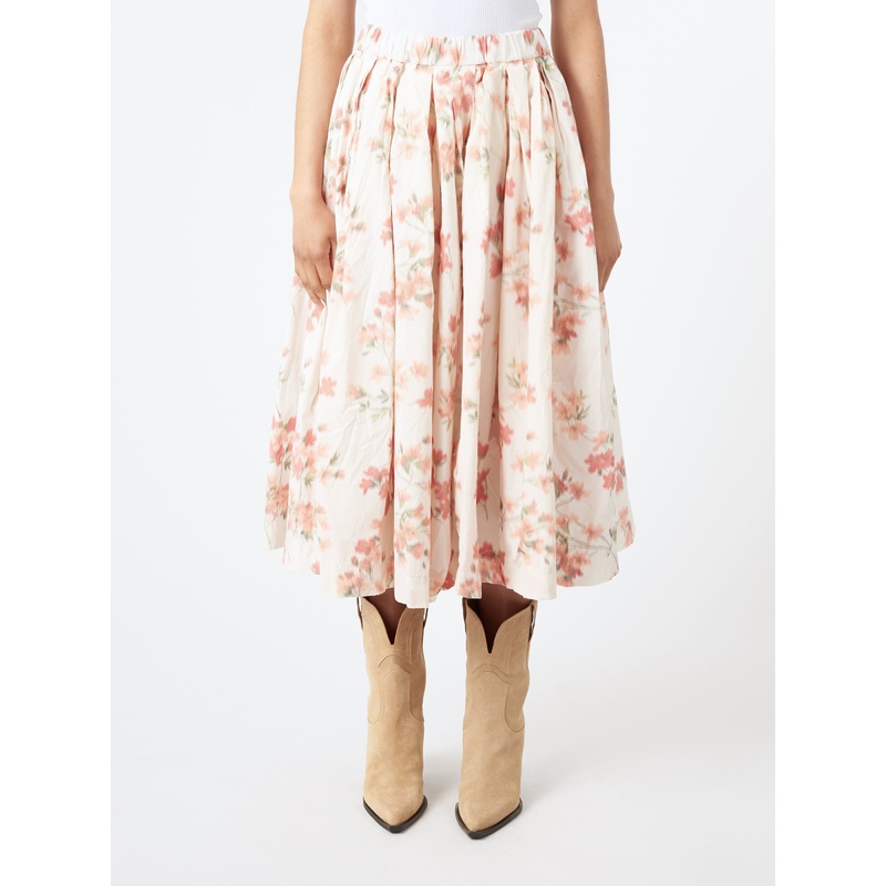 Casey Casey skirt with pleats along the front and back. Crafted from a regular weight cotton polyester Ikat fabric with a distinctive flower pattern.Elastic waistband with drawstringPleated front and backFront pocketsMidi-lengthMaterialsFabric Content: 56%