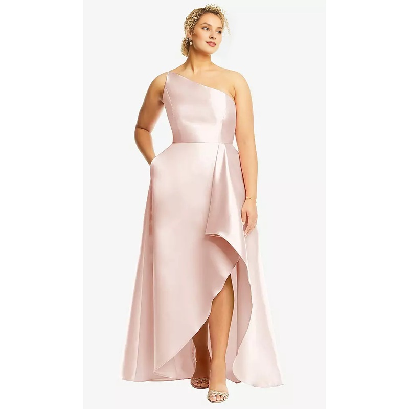 Be the first to review “Drawn front slit and pocket with one shoulder satin Prom dress”