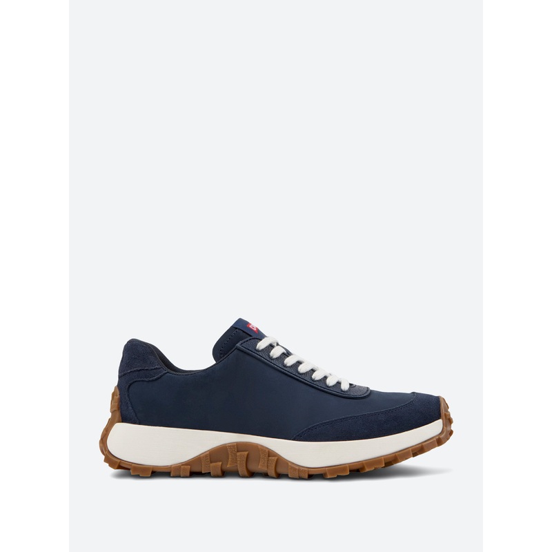 Camper Drift Trail fuses high-performance innovation with a vintage aesthetic.Low top sneakerLace-up closureOrthoLite Recycled removable footbedsEVA midsolesMaterialsUpper: nubuck and textileLining: recycled polyester and leatherOutsole: VibramSize GuideFi