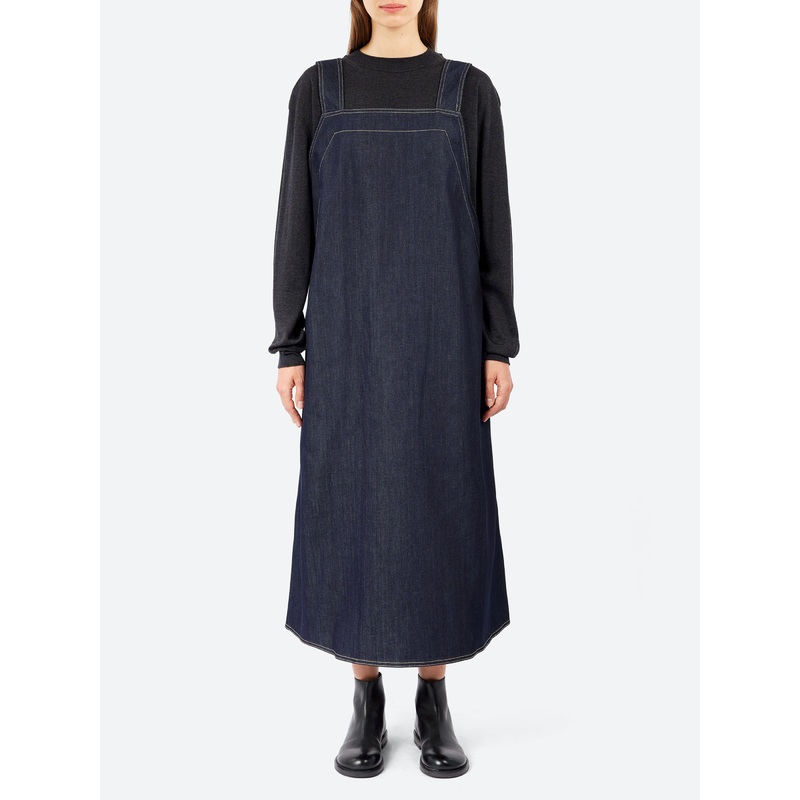 The Drost dress by Sofie DHoore blends minimalist design with everyday functionality. Crafted from 100% cotton woven denim in a rich blue tone, this apron dress delivers a timeless, wear-anywhere silhouette. Designed for ease and movement, the dress features a generous fit and an open wrapped back for an unexpected finish. Whether layered or worn solo, it’s a versatile piece that transitions effortlessly between seasons and occasions.