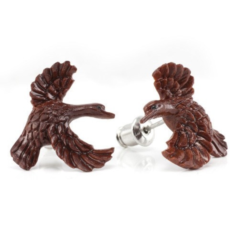 These duck stud earringsare handcarved from sabowood by Urban Star Organics. The postsand friction backs aremade from 316L stainless steel.