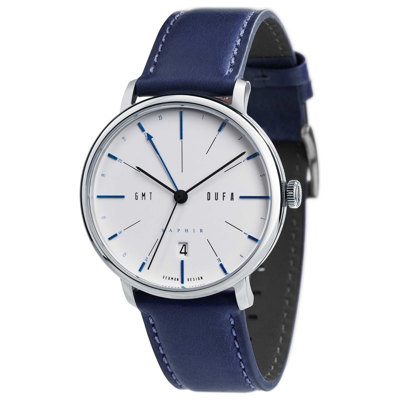 DuFa, Saphir GMT, Men’s Watch, Stainless Steel Case, Leather Strap, Quartz (Battery-Powered), DF-9030-01