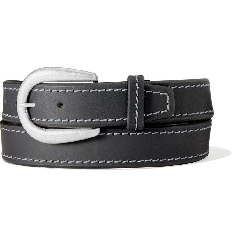 With heavy saddle stitching and edged-dyed detailing, this belt with a sculpted silver-plated buckle is the perfect everyday go-to.