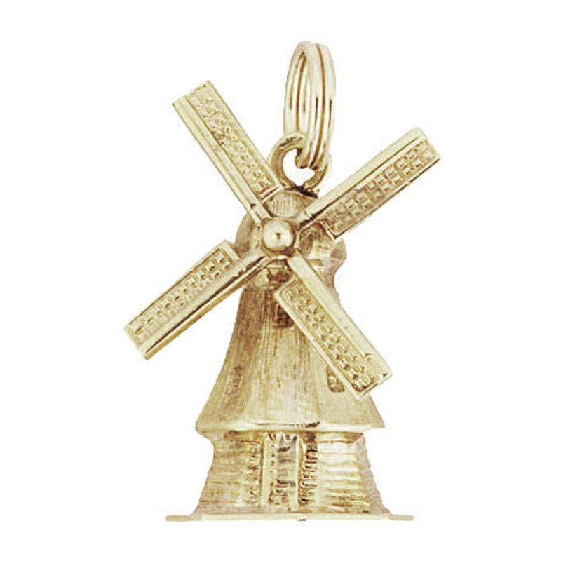 Dutch Windmill Charm in 14 Karat Yellow Gold With Movable Blades