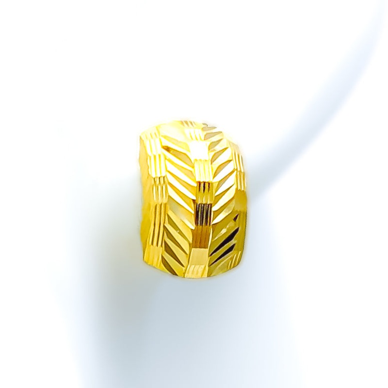 These 22k gold earrings, weighing 2.2 grams, feature a dynamic and classy design that exudes elegance and sophistication. The yellow gold finish enhances their luxurious and radiant appearance. Measuring 0.5 inches in length, these tops-style earrings are