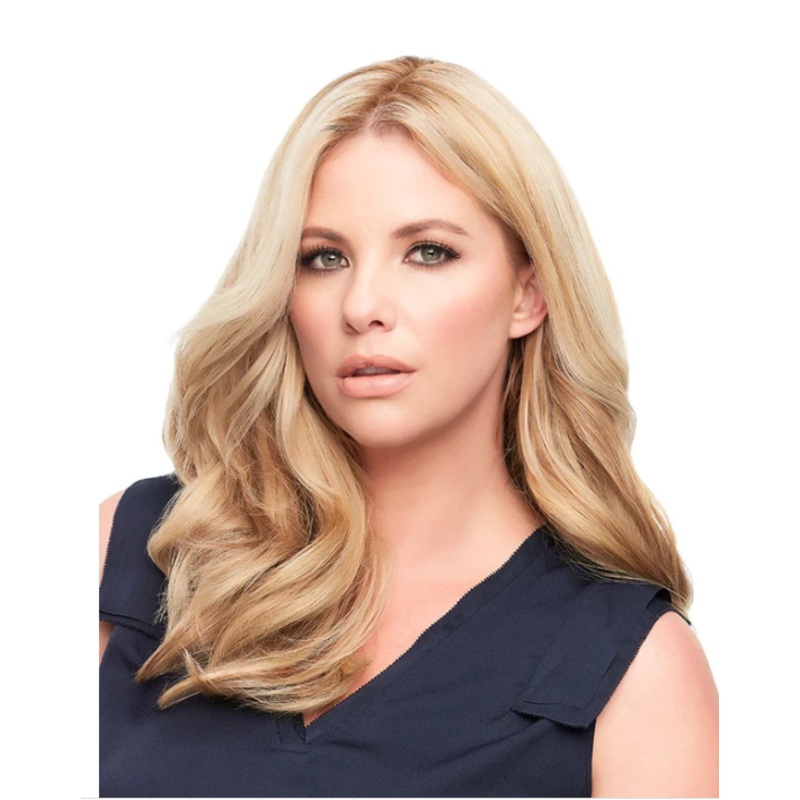 This clip in topper, worn over the part, adds volume to medium-length styles with beautiful Remy human hair. The design is hand-tied using French knotting, a superior knotting technique that creates the most natural appearance possible.