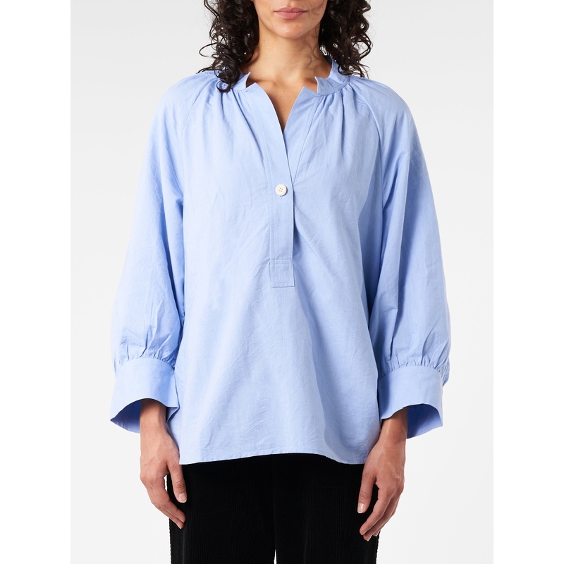 TOAST effortless shirt is crafted from soft, lightweight cotton oxford which is comfortable against the skin. Shaped with a band collar and raglan sleeves, with delicate gathers for a feminine note.