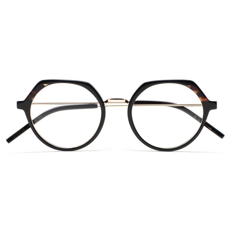 The Kaleos // Eatenton combines a classic round shape with sleek, flat eyebrow detailing for a modern twist. Crafted from ultra-thin stainless steel and high-density acetate trim, these frames offer a lightweight yet durable design. The built-in acetate no