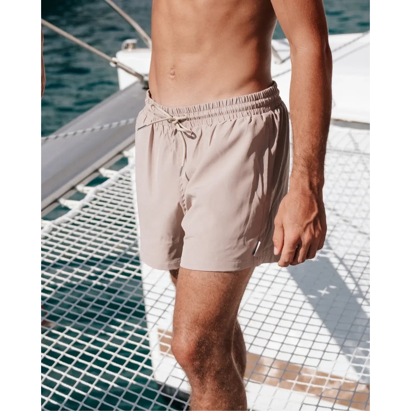 The Eden swim trunks are designed to be stylish, comfy, and functional. They feature a hidden zipper pocket for your essentials. The inner mesh isnt your typical fishnet, its super soft and gentle on the skin. The length hits around mid-thigh for a clean, modern fit.
