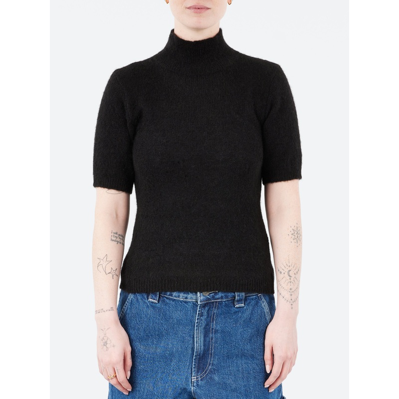 Black high-collar jumper in alpaca.High collarShort sleevesRibbed neck, cuffs and hemStraight cutMaterialsFabric Content: 65% alpaca, 25% polyamide, 10% woolMade in RomaniaSize GuidePascale wears size S. She is 5'10"; bust 33.5"; waist 25.5"; hips 37"Fits