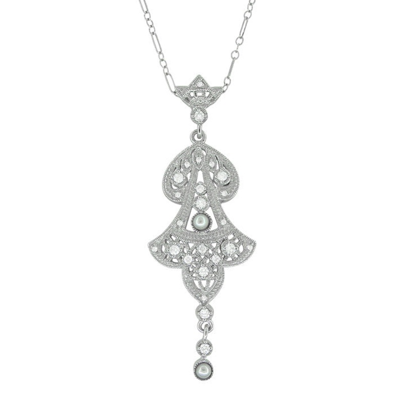 Edwardian Pearl Lavalier Drop Pendant Necklace in 14 Karat White Gold